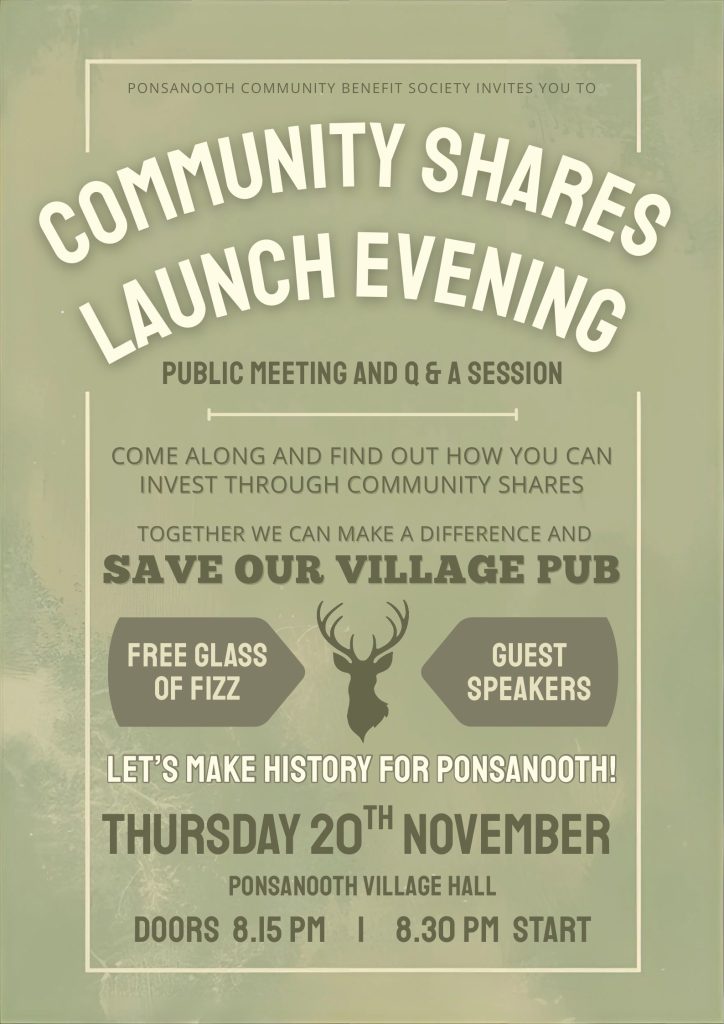 By investing, you will become a member of the society (Ponsanooth CBS), and will not only own a part of the pub and have a stake in its success, but will have an equal say over its operation. The more members we have as a society, the better we can reflect the community we serve and the more we can act in their interests.